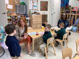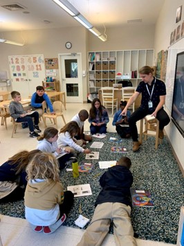 To honor President’s Day, this past week, Lower School students created eagle puppet crafts (for George Washington), and participated in a Science experiment with pennies, vinegar and salt (for Abraham Lincoln). Students also spent time exploring the human senses by comparing rough and smooth, learning about the history and playing of the Acoustic guitar, and showed their skills with matching numbers and number sense in Math class.